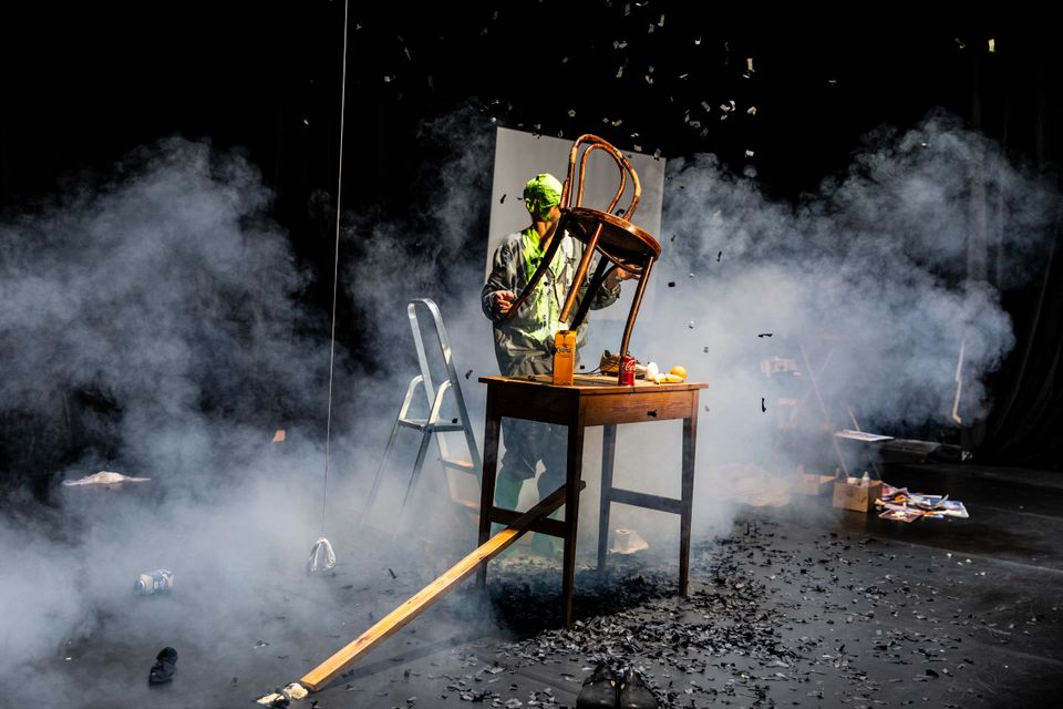 Een goochelaar met niets in de handen en (bijna) niets in de mouwen. Hij doet iets met boter, iets met foto’s uit kranten en iets met een banaan en een appelsien. Het zou je plezier bederven als je weet hoe het afloopt. Maar we verklappen wel dat tijdens de finale de goochelaar van kleur verandert.